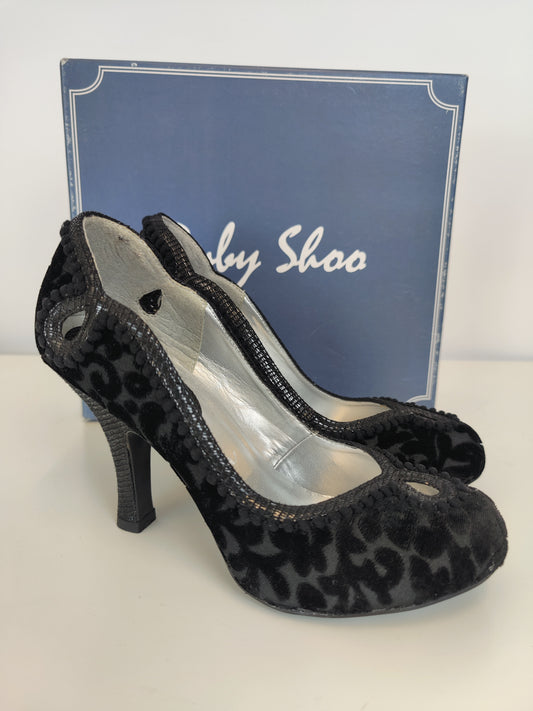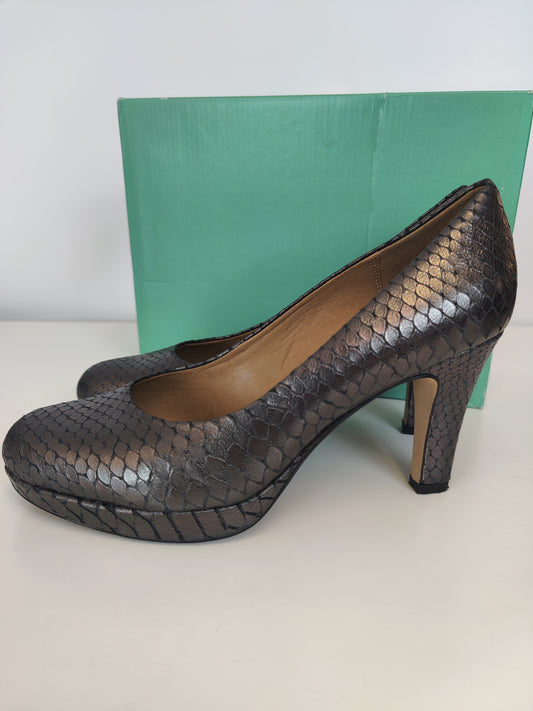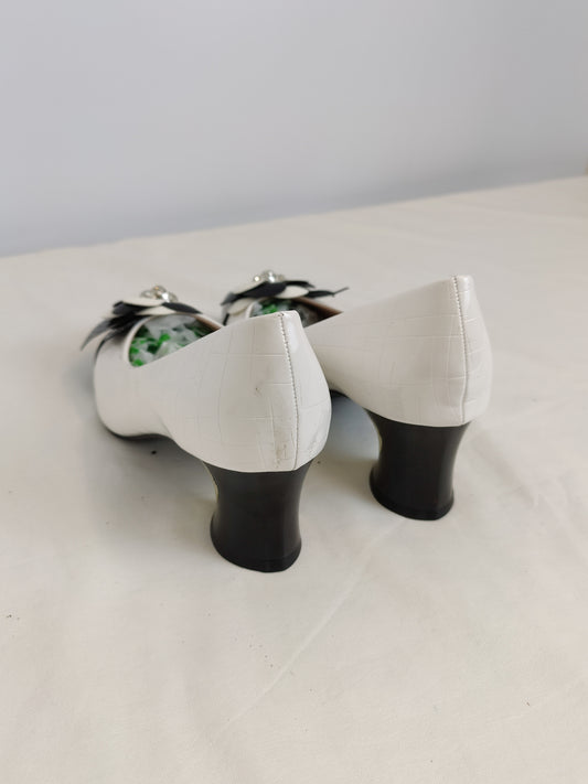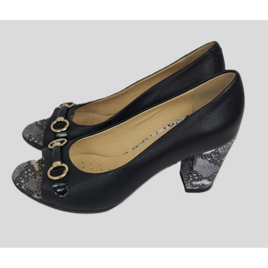 GEOX Women's Pumps-Black with Black/White Snakeskin Print Detail