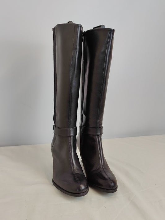 DKNY Polyana Leather/Stretch Knee High Boots - Brown