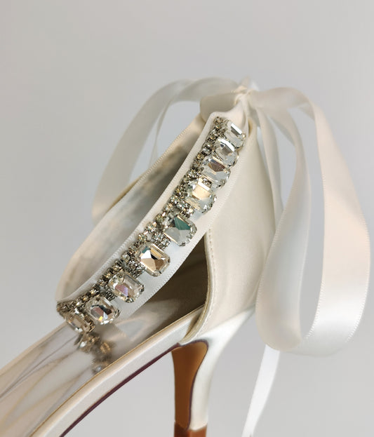 Azazie Crystal Satin Ribbon Pumps - Ivory