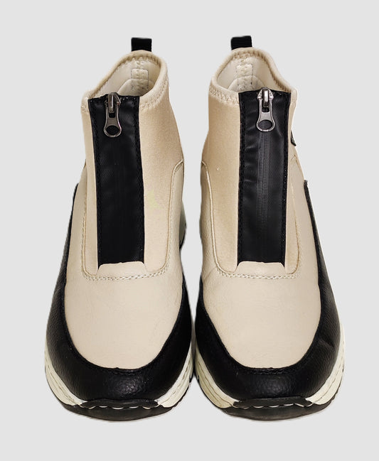 S Olive Women's Ankle Boot Chunky Sole-Navy and Tan