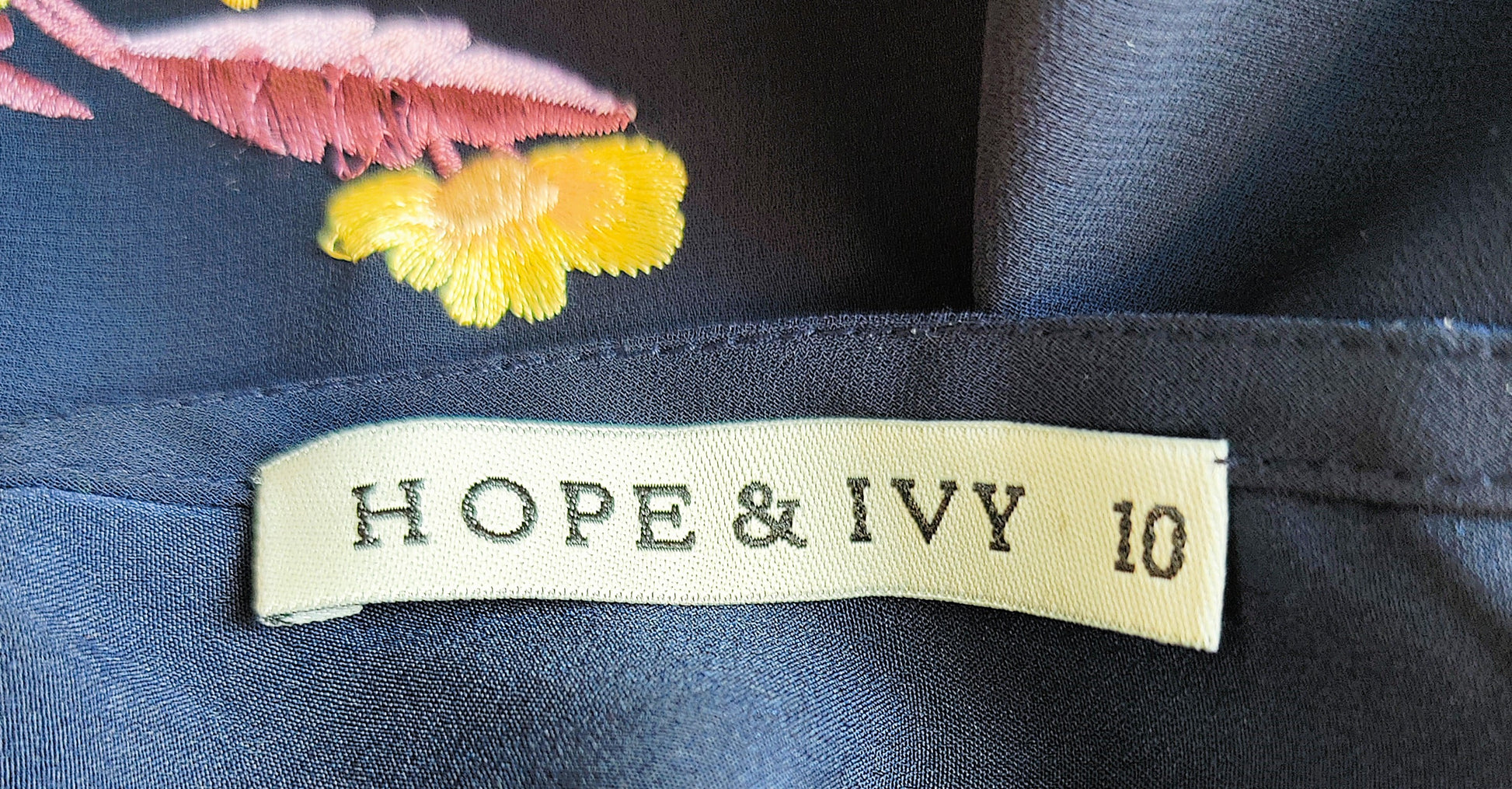 Hope & Ivy Wrap Style Dress with Embroidered Flower Pattern-Navy